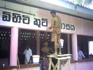 Das Sambodhi-Heim bekommt seine Mahlzeiten von den Einwohnern Dickwellas. Jeden Tag kocht eine andere Familie und bringt das Essen ins Heim. Es gibt allerdings Tage, an denen es kein Essen gibt. Dann wird im Heim eine Kleinigkeit zubereitet. Allerdings scheiterte das bisher an den mangelnden Möglichkeiten in der zerfallenen Küche. Wir besorgten eine Propangasflasche, denn ein Gaskocher war bereits vorhanden. So ist das Heim nun wenigstens in der Lage, warmes Essen zuzubereiten.