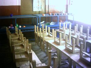 So ließen wir 20 Einzeltische und 20 Stühle herstellen und stellten diese im Haupthaus im Speisesaal auf. Von diesem Zeitpunkt an mussten nun die Behinderten ihre Mahlzeiten dort einnehmen. Die neue Situation wurde dankbar angenommen und seitdem ist der Schlafsaal frei von Essensresten und somit auch frei von Fliegen und Ameisen.