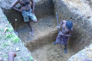 Beim Ausheben der Sickergrube für den internen Sanitärbereich der Behinderte